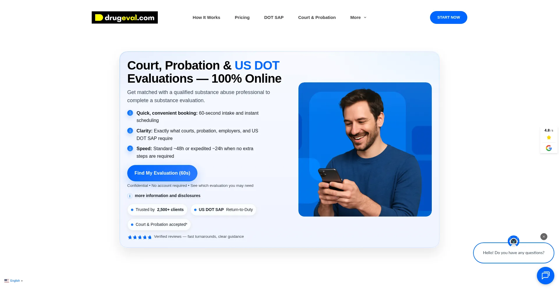 Experience the convenience of online substance evaluations. Book in 60 seconds and receive expert guidance tailored to your needs.