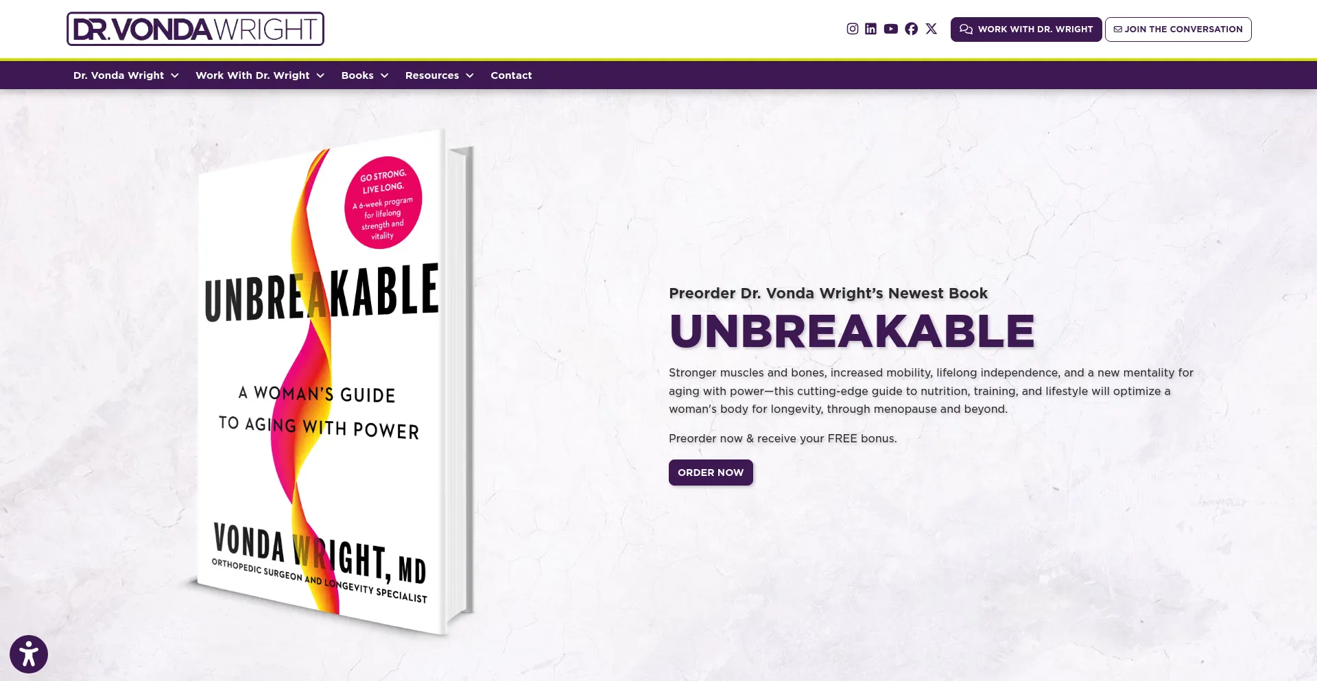 Dr. Vonda Wright, orthopedic surgeon and health innovator, inspires peak performance, healthy aging, and women’s vitality through expert care and guidance.
