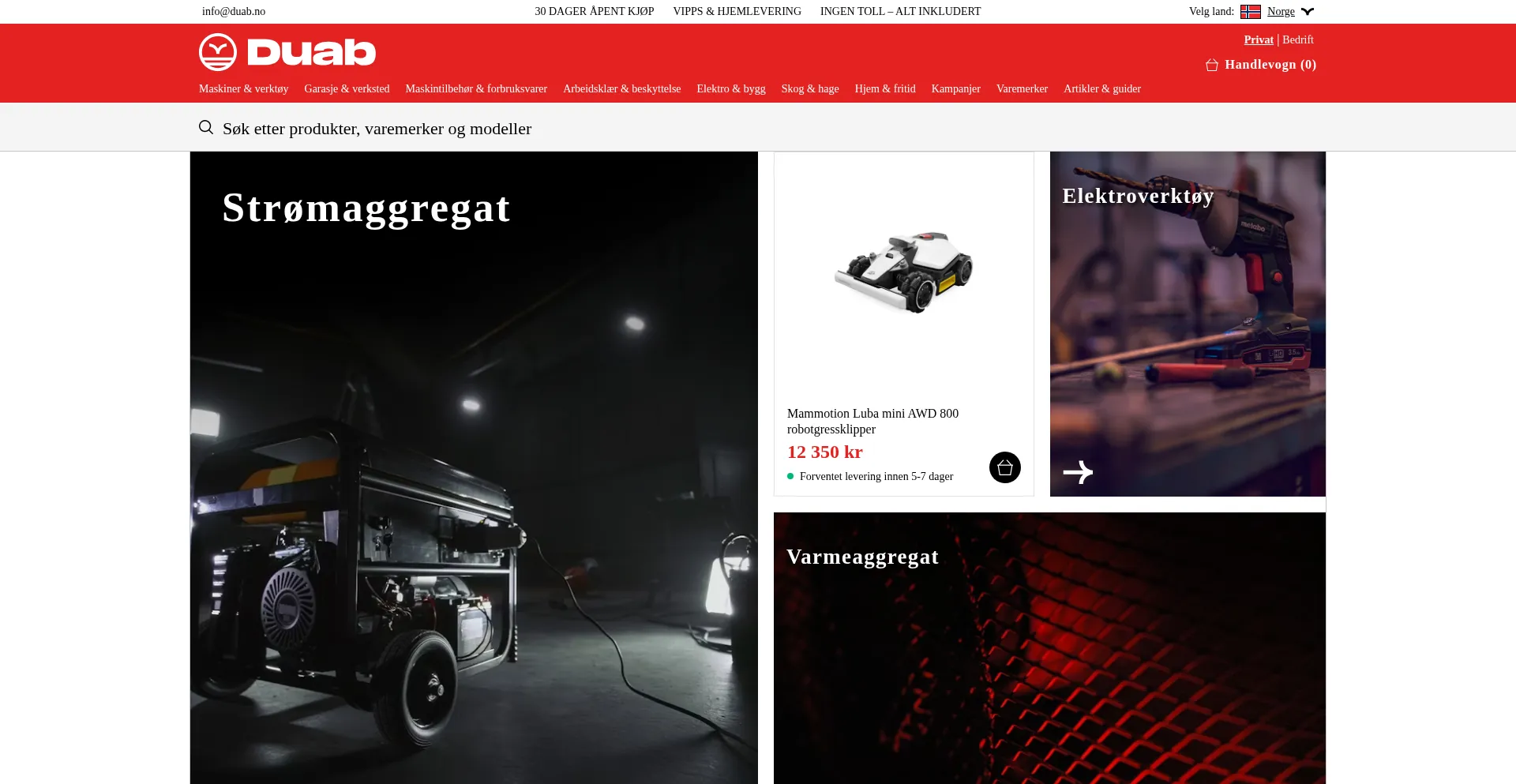 Hos Duab finner du et stort utvalg av maskiner og verktøy til riktig pris fra kjente varemerker. Kunnskapsrike ansatte og raske leveranser.