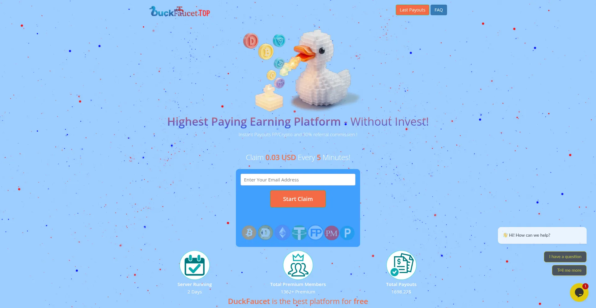 DuckFaucet.Top Claim 0.03 USD Every 5 Minutes without Investment