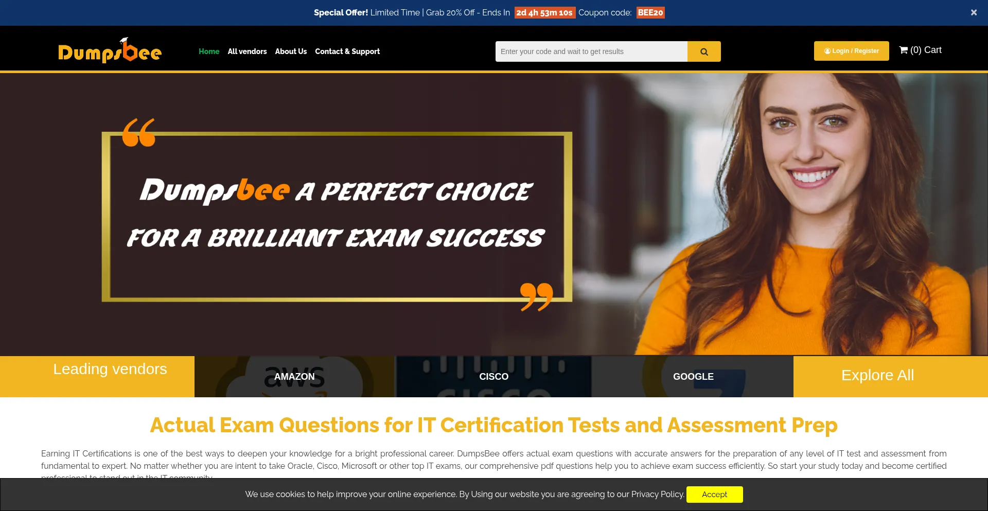 Achieve your IT Certification with actual exam questions and answers. DumpsBee offers the updated pdf dumps for all major IT tests and assessments preparation. Deepen your knowl...