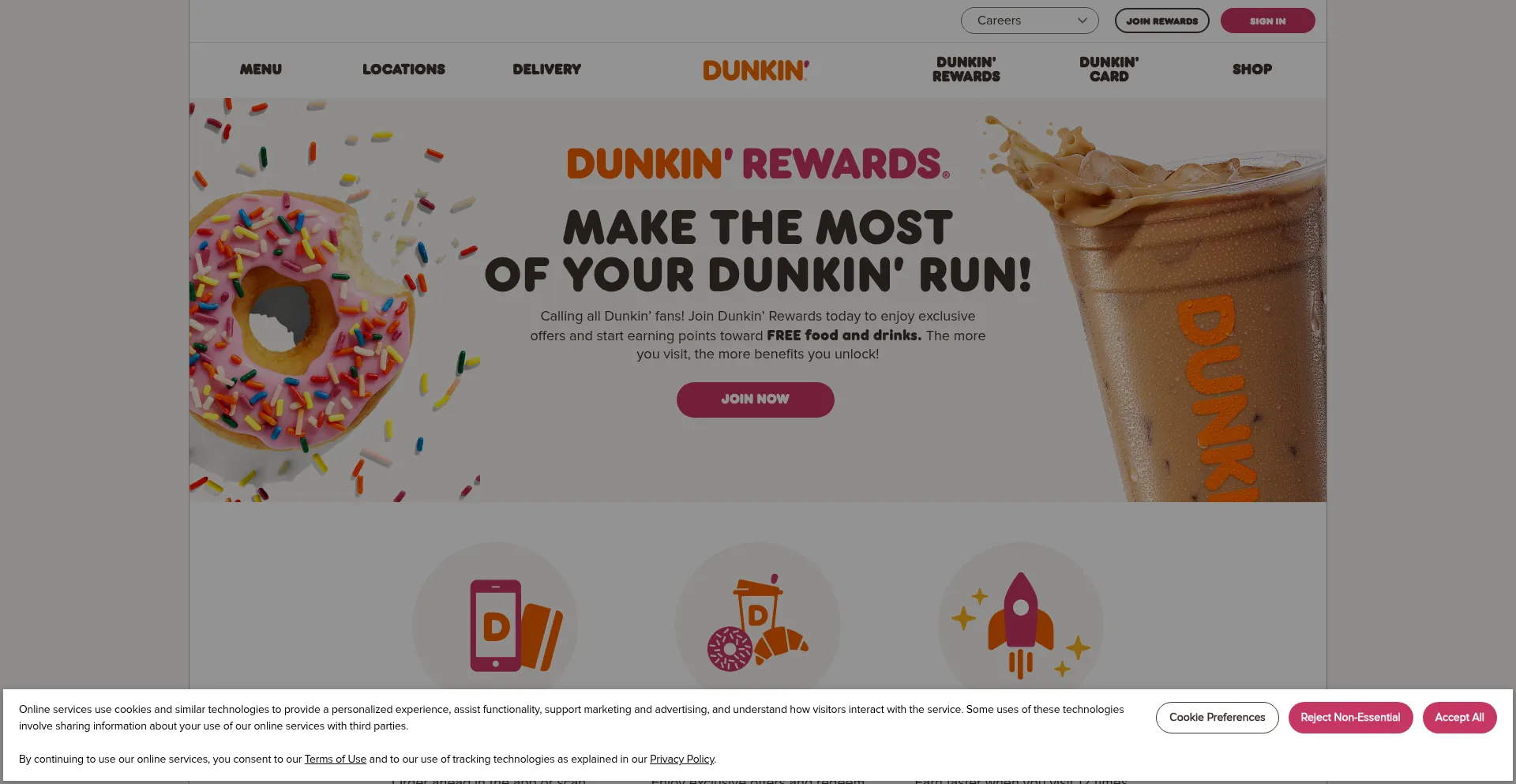 The website implements cookie consent mechanisms in compliance with privacy regulations such as GDPR or CCPA. This demonstrates that dunkindonuts.com adheres to data protection standards and provides users with control over personal data collection practices.