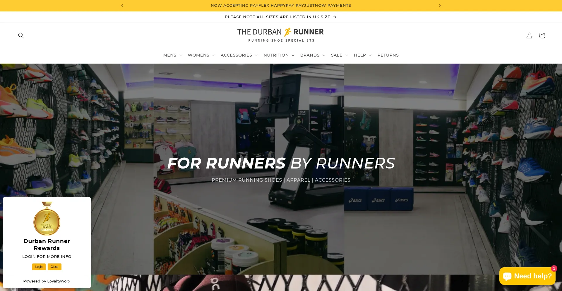 Analysis indicates that durbanrunner.co.za operates as an e-commerce platform facilitating online transactions for goods or services. The website implements shopping cart functionality, payment processing systems, and product catalog features typical of commercial retail operations.