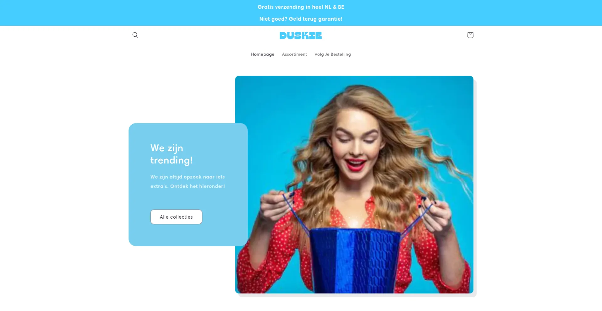Analysis indicates that duskie.nl operates as an e-commerce platform facilitating online transactions for goods or services. The website implements shopping cart functionality, payment processing systems, and product catalog features typical of commercial retail operations.