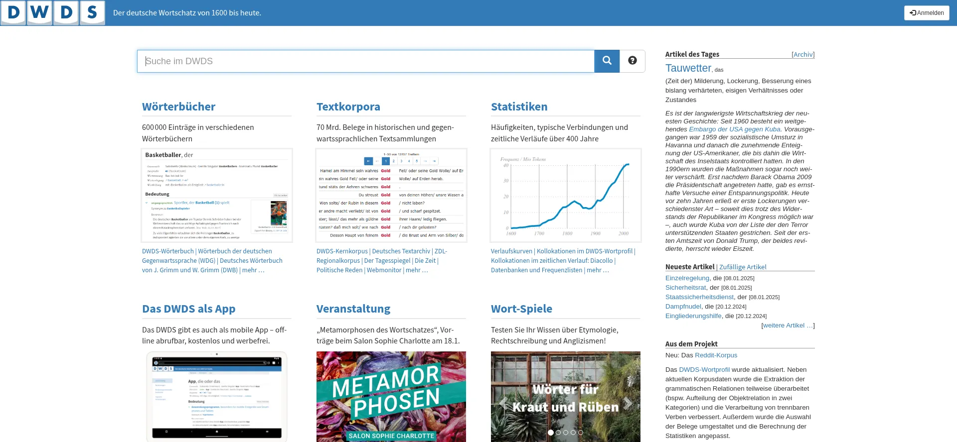 DWDS − Der deutsche Wortschatz von 1600 bis heute.