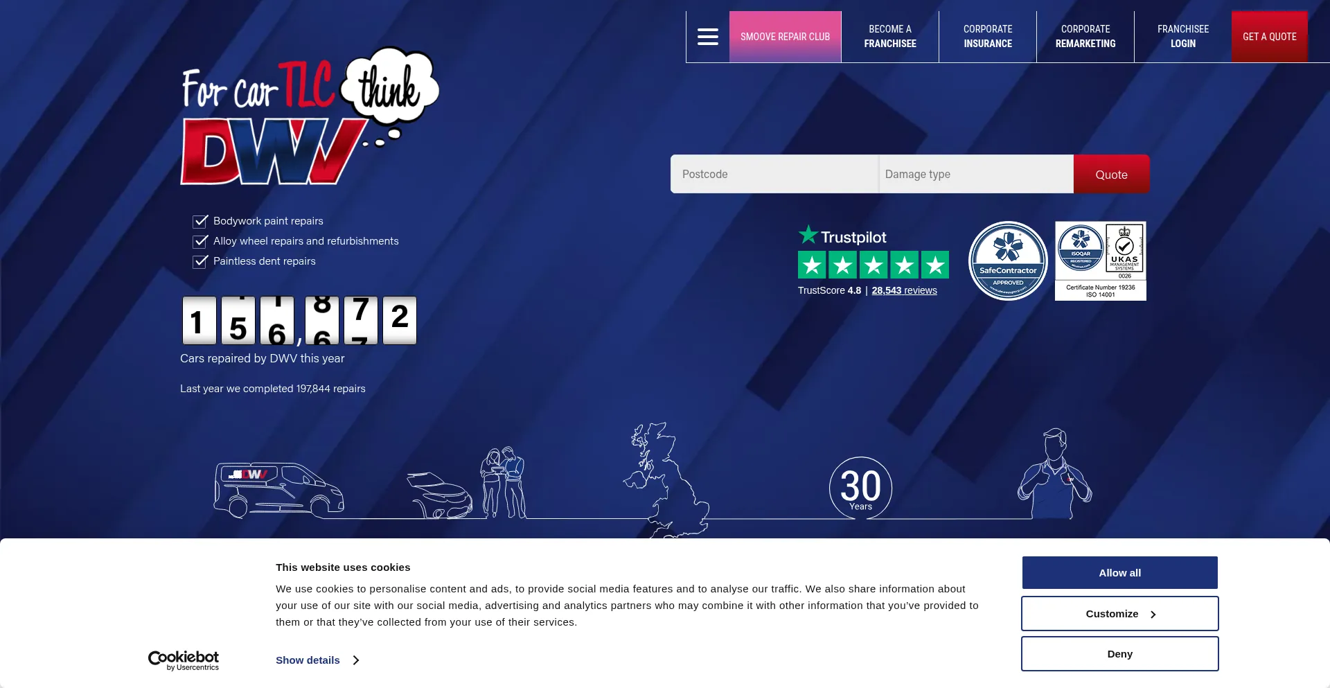 Mobile paintless dent repairs, alloy wheel refurbishment and bodywork paint repairs. All areas of the UK covered, trusted by over 100,000 customers each year.