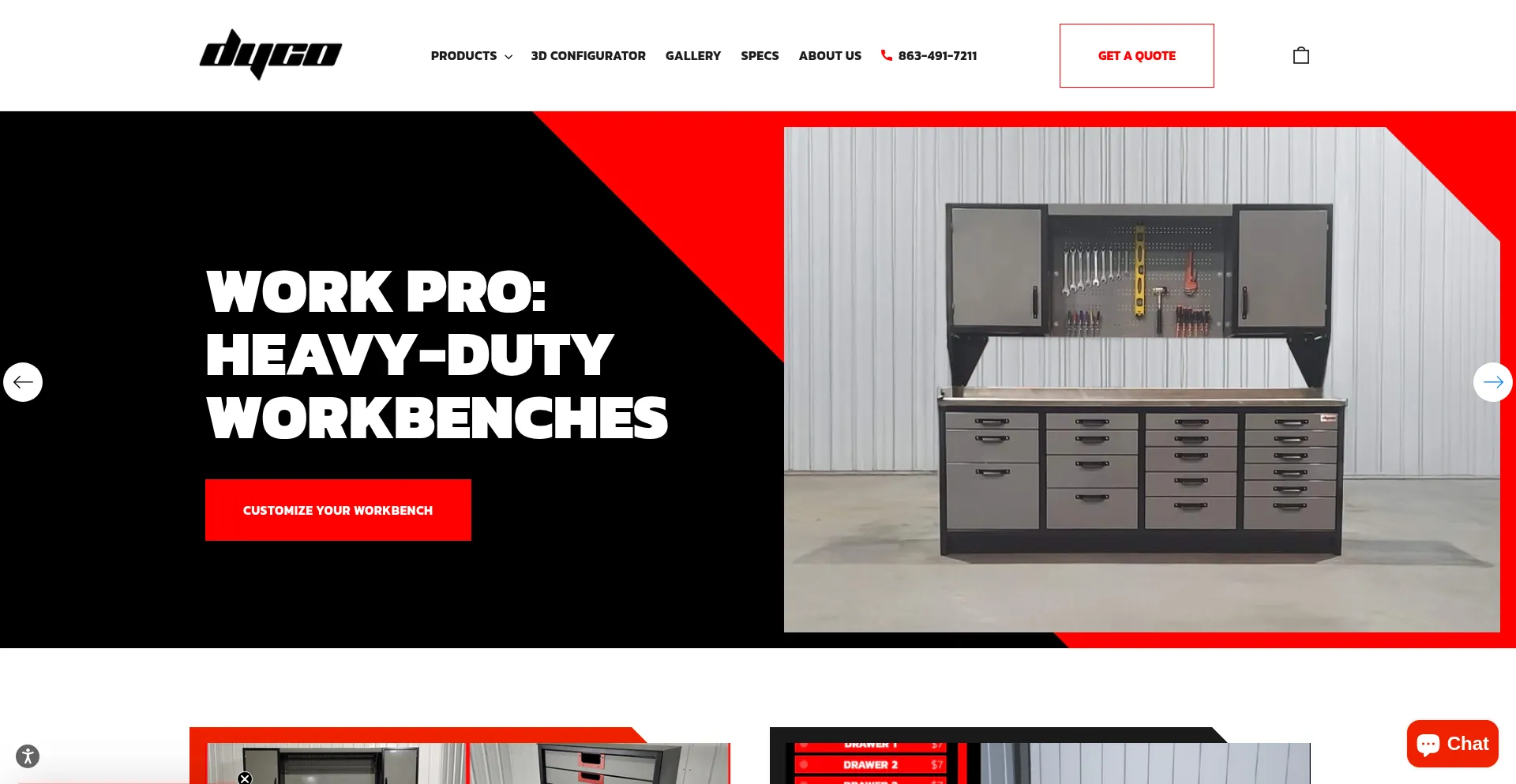 Dyco – superior quality storage solutions manufacturer: heavy-duty steel workbenches, parts cabinets, truck toolboxes, and welding carts.