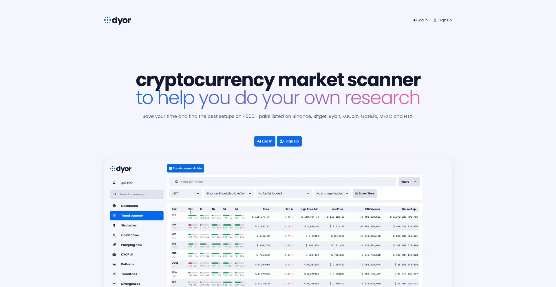 Crypto market scanner for cryprocurrency trading - DYOR.net