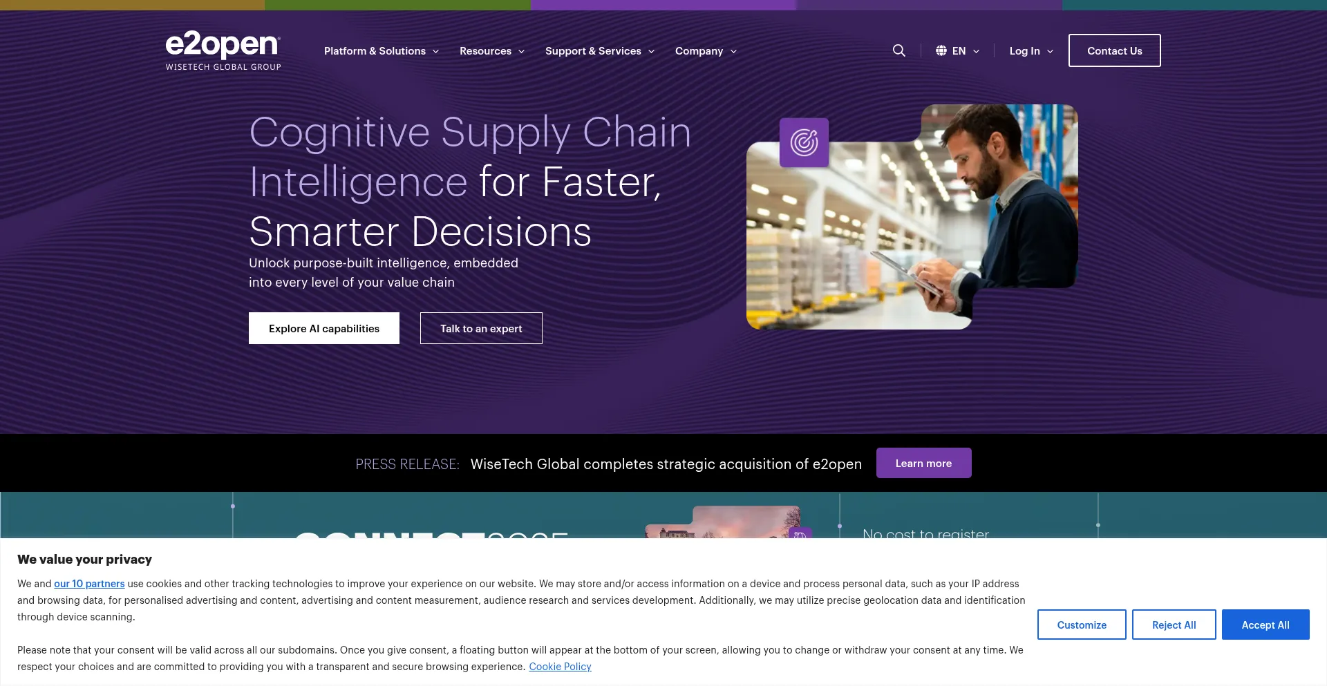 The website implements cookie consent mechanisms in compliance with privacy regulations such as GDPR or CCPA. This demonstrates that e2open.com adheres to data protection standards and provides users with control over personal data collection practices.