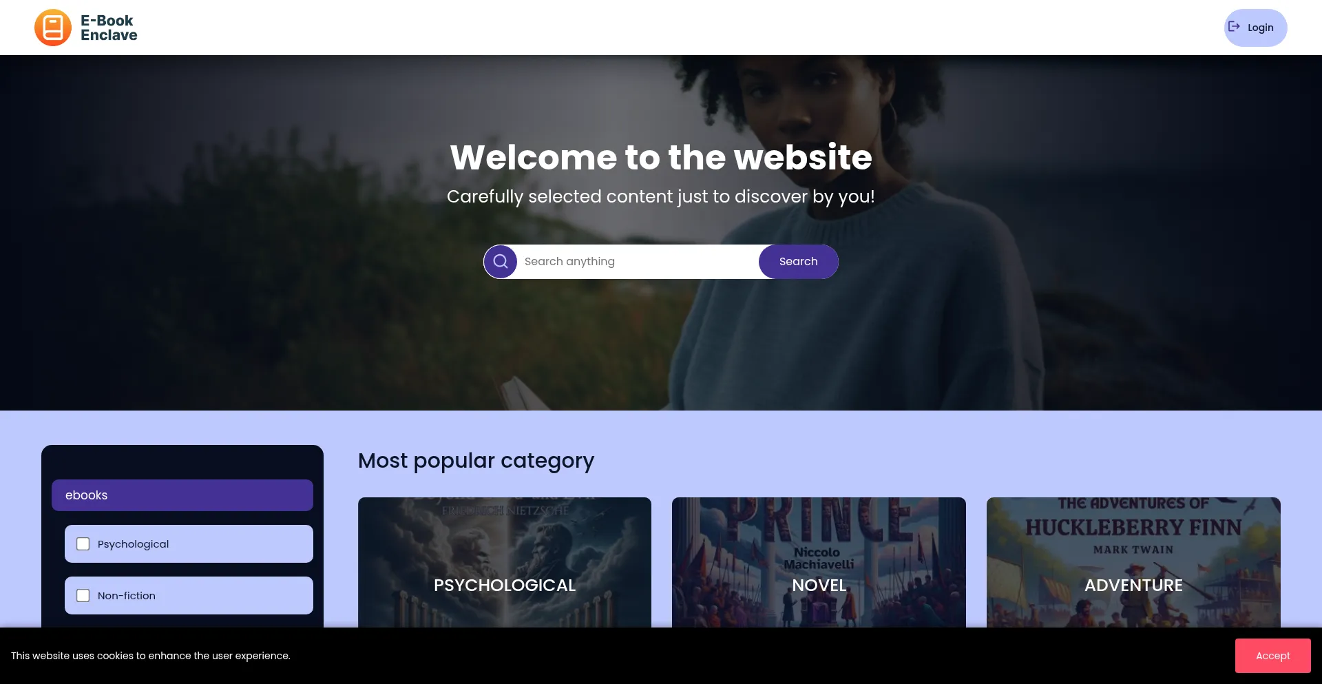 The e-bookenclave.com website is built using React, a popular JavaScript library for creating interactive user interfaces.