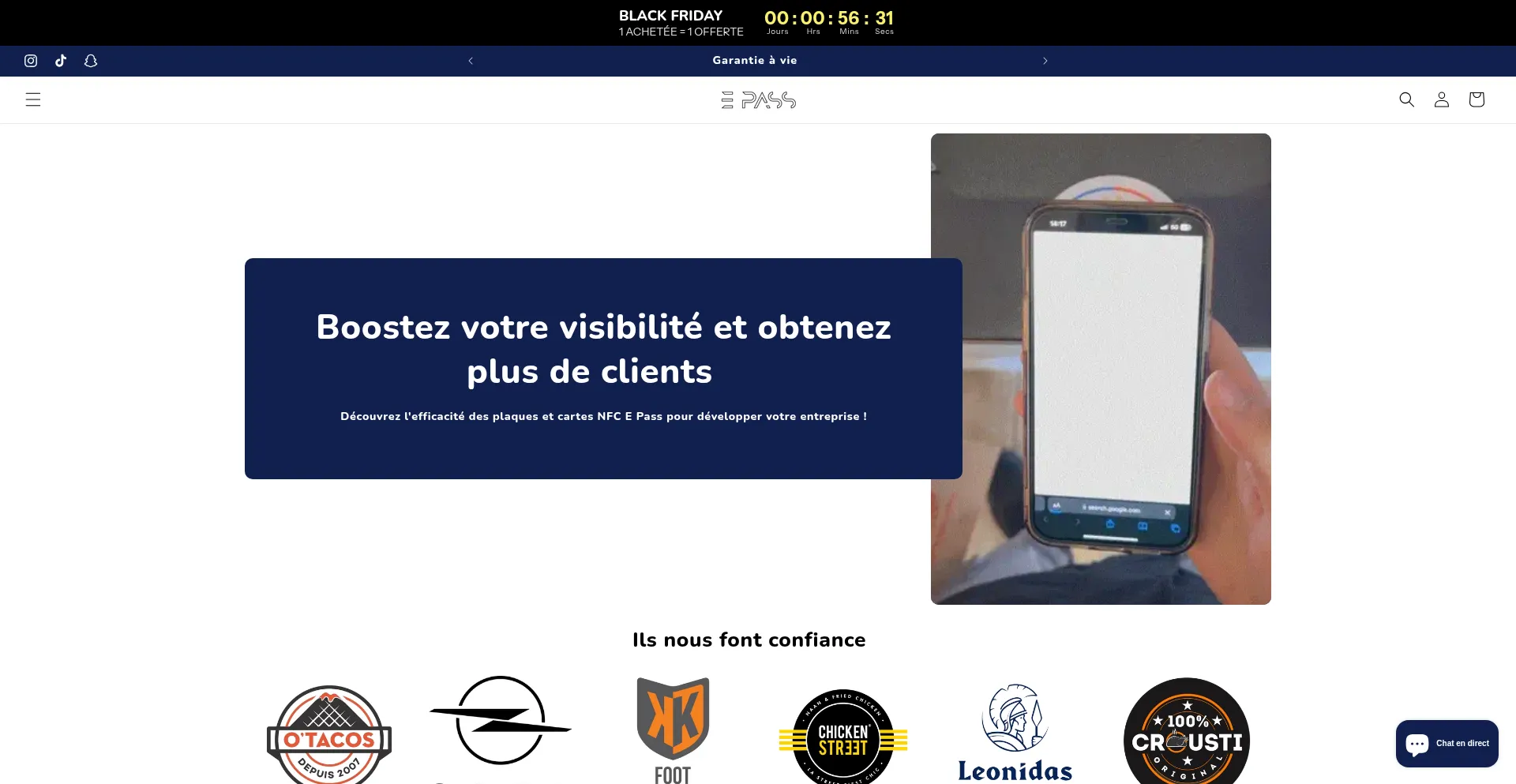 Boostez votre visibilité en ligne avec E Pass ! Nos plaques et cartes NFC facilitent la collecte d'avis Google et vous permettent d'obtenir plus de visibilité sur vos réseaux...
