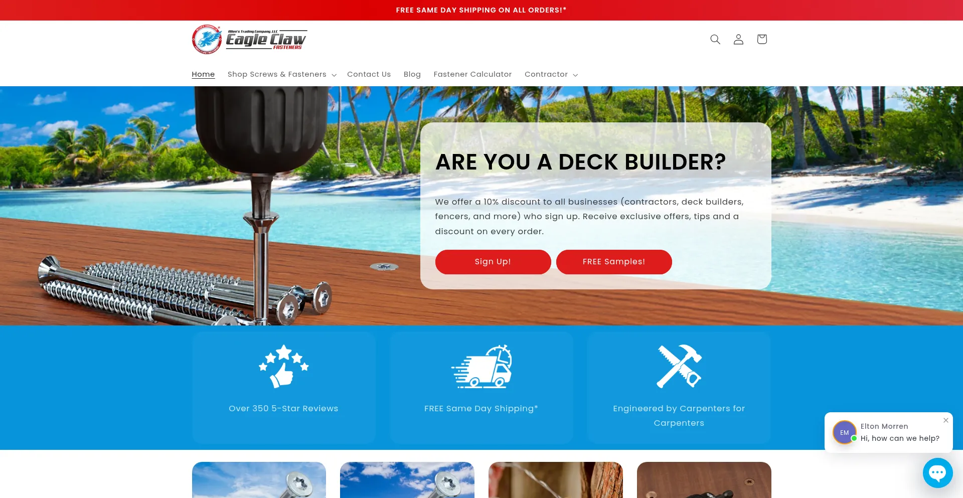 The eagleclawco.com website utilizes free e-commerce platform solutions, which may indicate cost-conscious operations but could also suggest limitations in security features, customer support, or advanced functionality compared to enterprise-grade solutions.