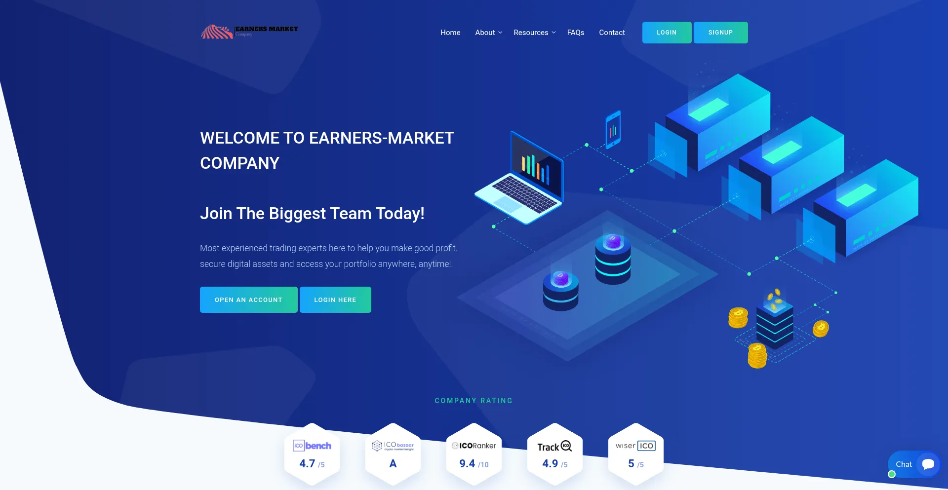 Earners-market.com operates as a suspicious website with multiple red flags that compromise its trustworthiness and user safety. The platform exhibits concerning characteristics including misleading information, questionable operational practices, or potential malware distribution that poses significant risks to visitors.