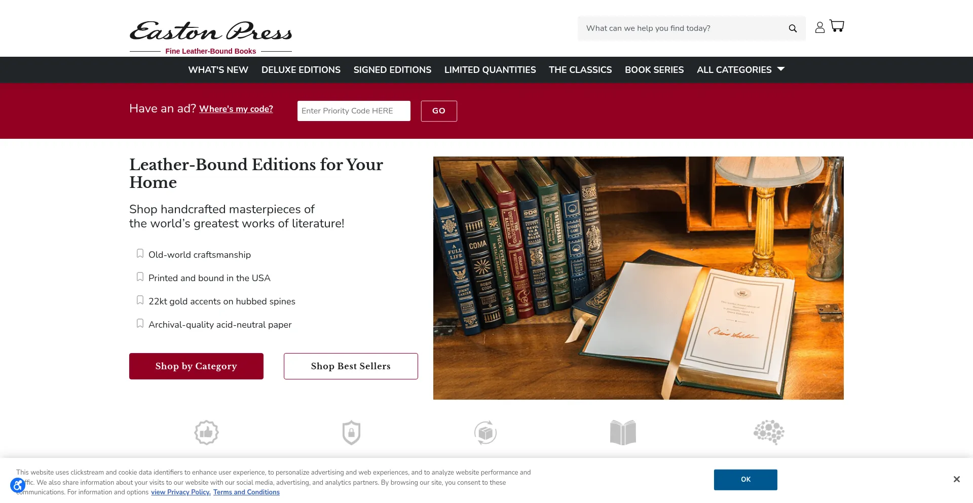 Analysis indicates that eastonpress.com operates as an e-commerce platform facilitating online transactions for goods or services. The website implements shopping cart functionality, payment processing systems, and product catalog features typical of commercial retail operations.