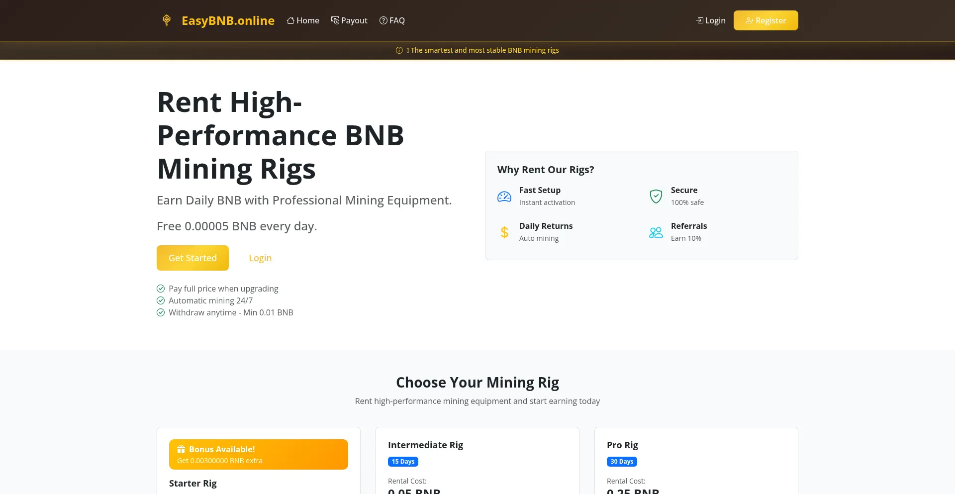 EasyBNB.online - Rent High-Performance BNB Mining Rigs