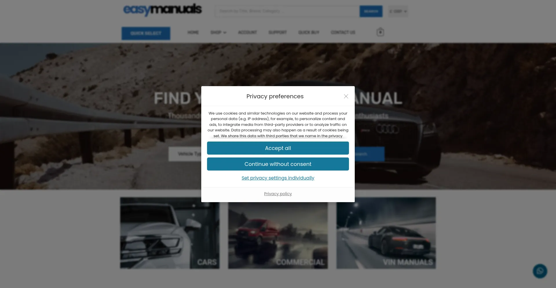 The website implements cookie consent mechanisms in compliance with privacy regulations such as GDPR or CCPA. This demonstrates that easymanuals.co.uk adheres to data protection standards and provides users with control over personal data collection practices.