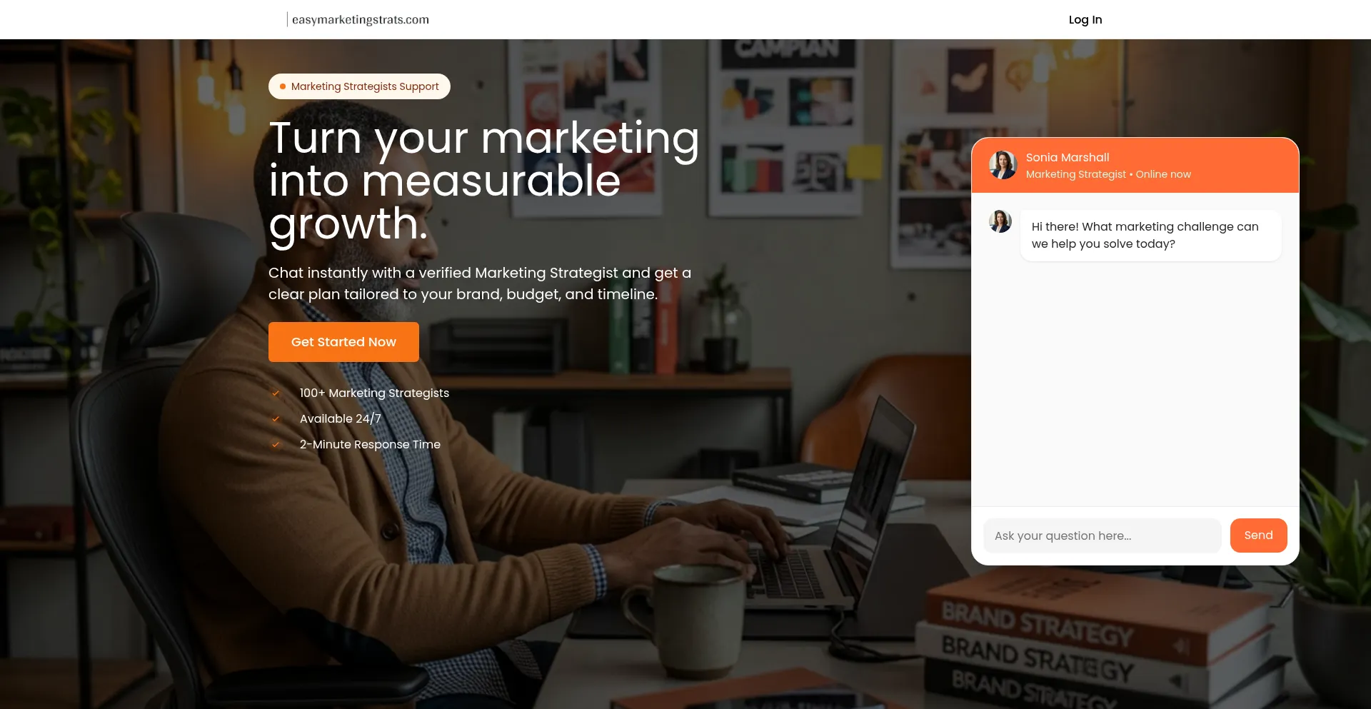 Chat instantly with a verified Marketing Strategist and get a clear plan tailored to your brand, budget, and timeline.