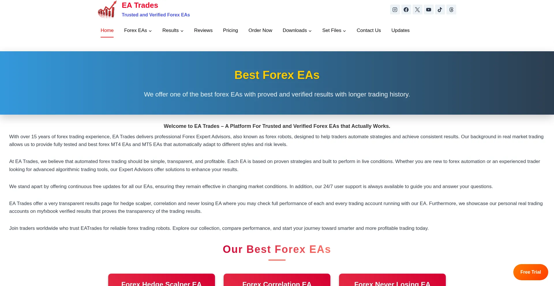 Download best forex EAs of 2025 with fully automatic strategies using hedging, scalping and trend strategy. Trade with confident with our forex EAs.