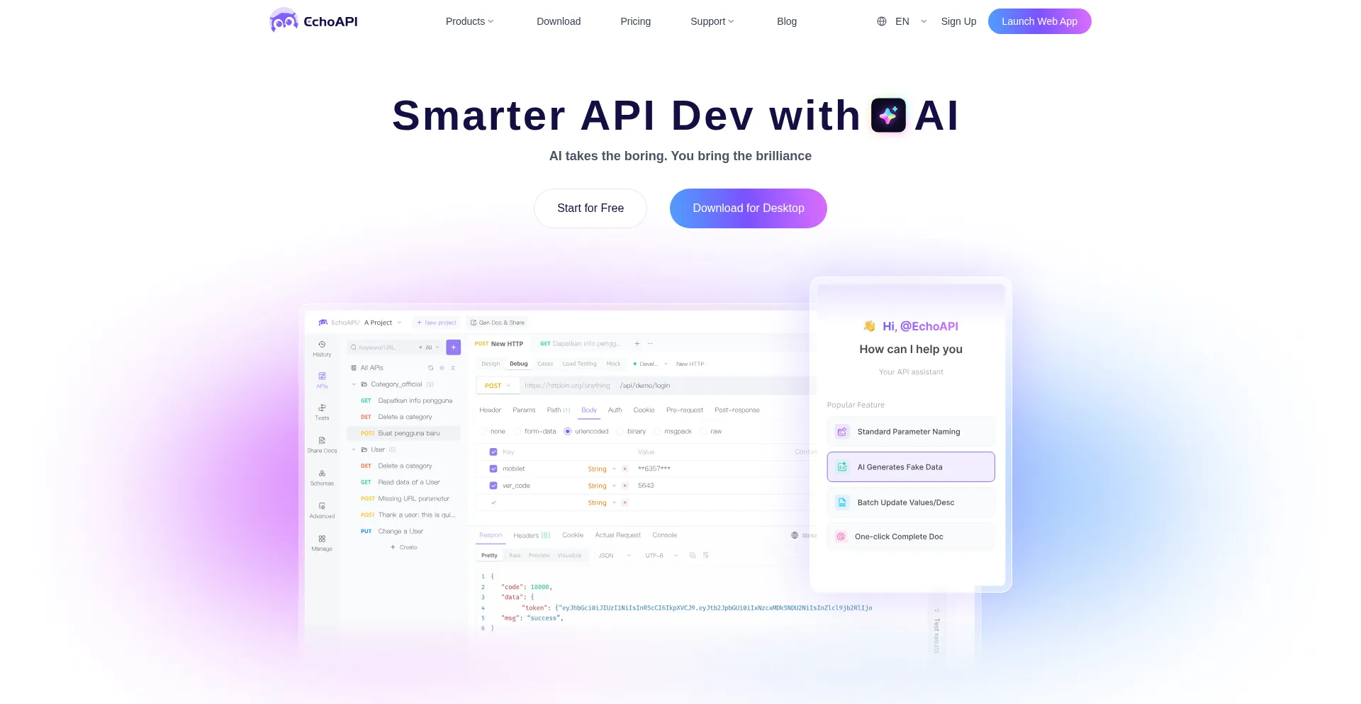 EchoAPI is your all-in-one tool for API design, debugging, load testing, automation, documentation, and mock server capabilities. No login required, works offline, super lightwe...