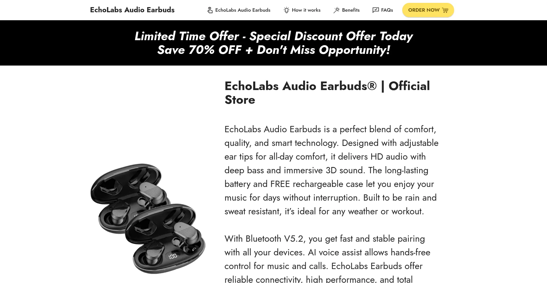 Echolabs-audio.com displays patterns commonly associated with problematic e-commerce sites: social media promotion, payment and data collection, and reported delivery issues. These patterns suggest potential risks for customers, though individual experiences may vary.