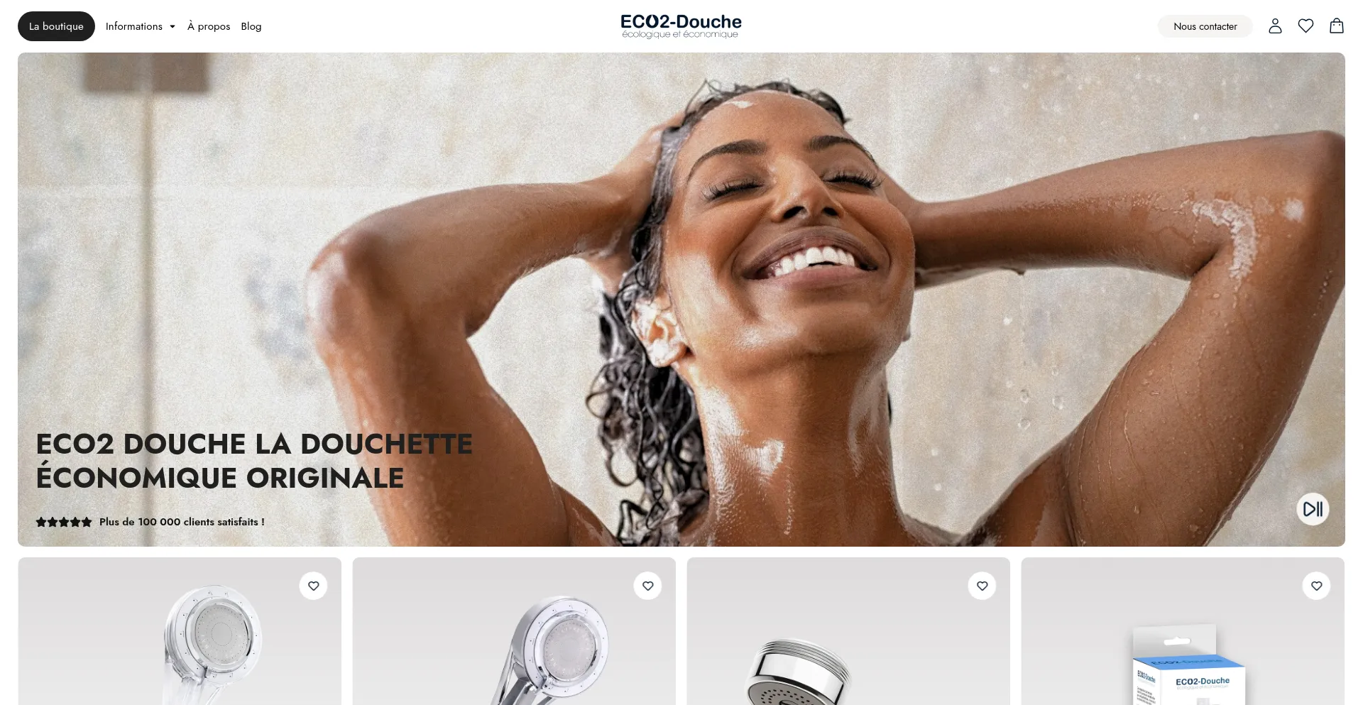 Eco2 Douche, fabricant français de douchettes écologiques, économiques et anti-calcaire. +90 000 clients. Livraison gratuite & garantie 2 ans.