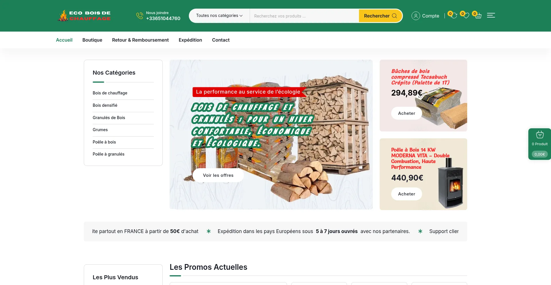 Shopping, Guns, Firewood, France, Wordpress Platform, Bootstrap Framework, Google Tag Manager, SEO Optimization, Animate.css Framework, Young Domain
