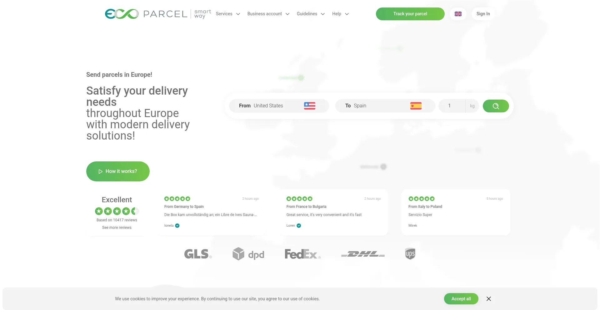 Ecoparcel.eu Fast, cheap parcel delivery in all Europe. Parcel tracking & free insurance. Send and track parcel safely, using best delivery service!