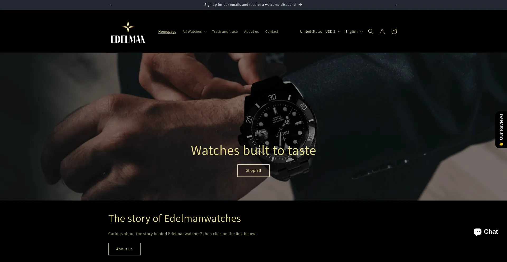 Our analyzer determines that website edelmanwatches.com is using Shopify CMS. Shopify is a popular e-commerce platform, powering around 4.4% of websites globally.