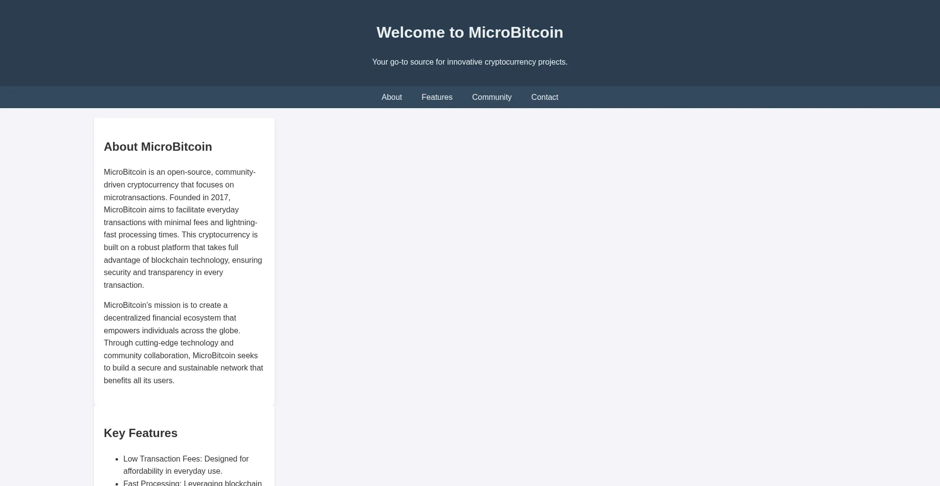 Discover MicroBitcoin, a community-driven cryptocurrency designed for everyday transactions. Learn more at MicroBitcoin.org