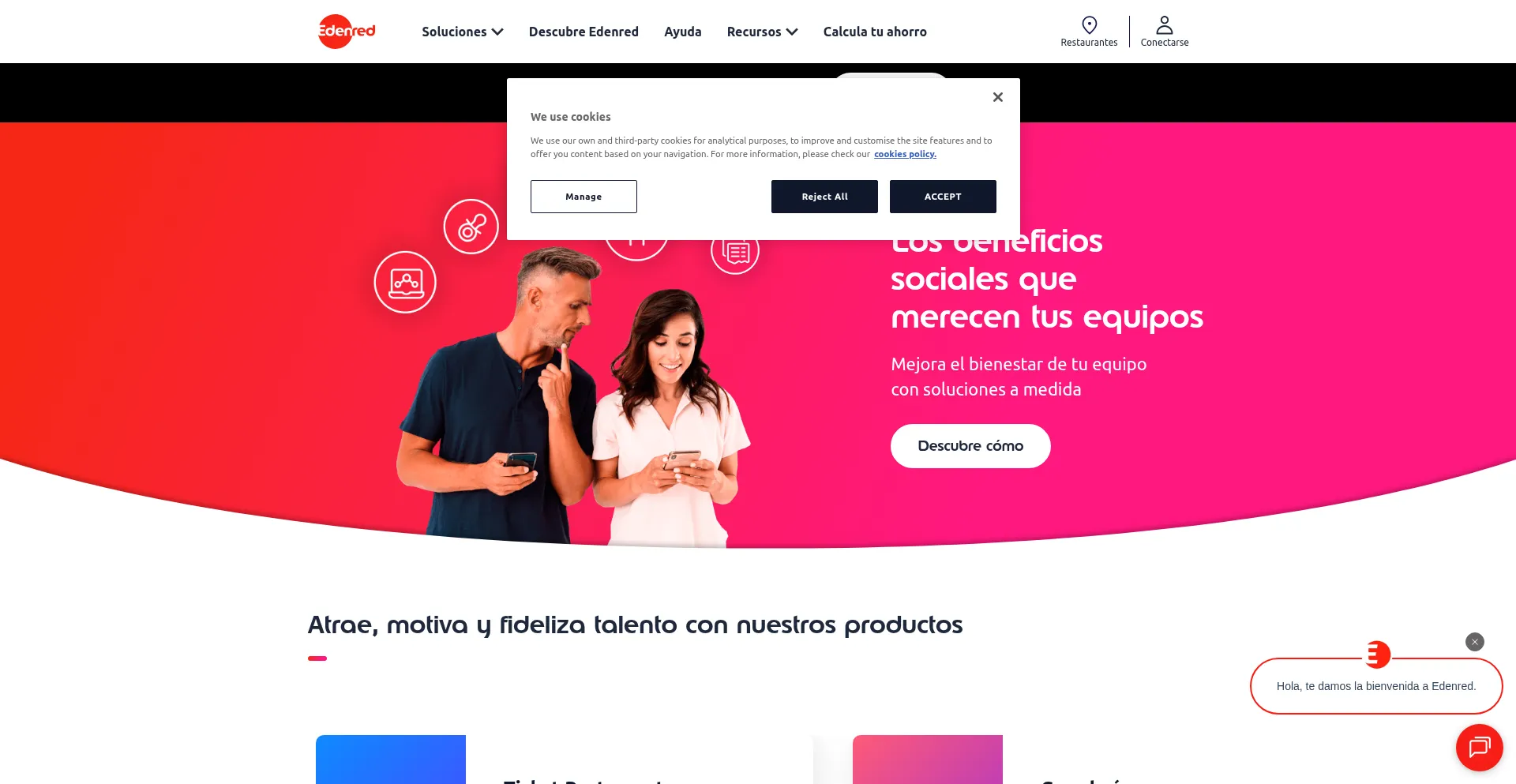 The website implements cookie consent mechanisms in compliance with privacy regulations such as GDPR or CCPA. This demonstrates that edenred.es adheres to data protection standards and provides users with control over personal data collection practices.