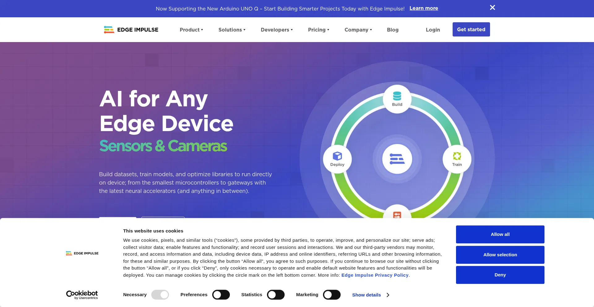 The website implements cookie consent mechanisms in compliance with privacy regulations such as GDPR or CCPA. This demonstrates that edgeimpulse.com adheres to data protection standards and provides users with control over personal data collection practices.