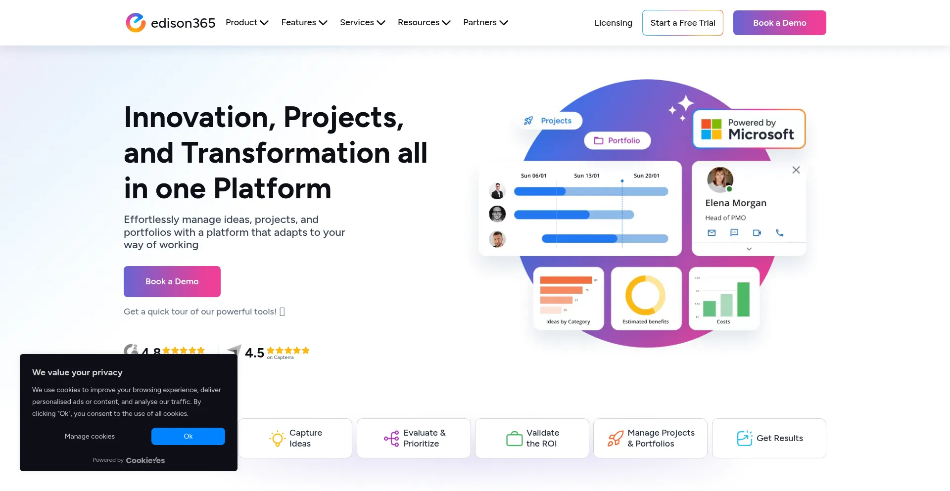 edison365 is a business transformation software. From innovation management to project management, make a case for your best ideas, assess risks, and more.