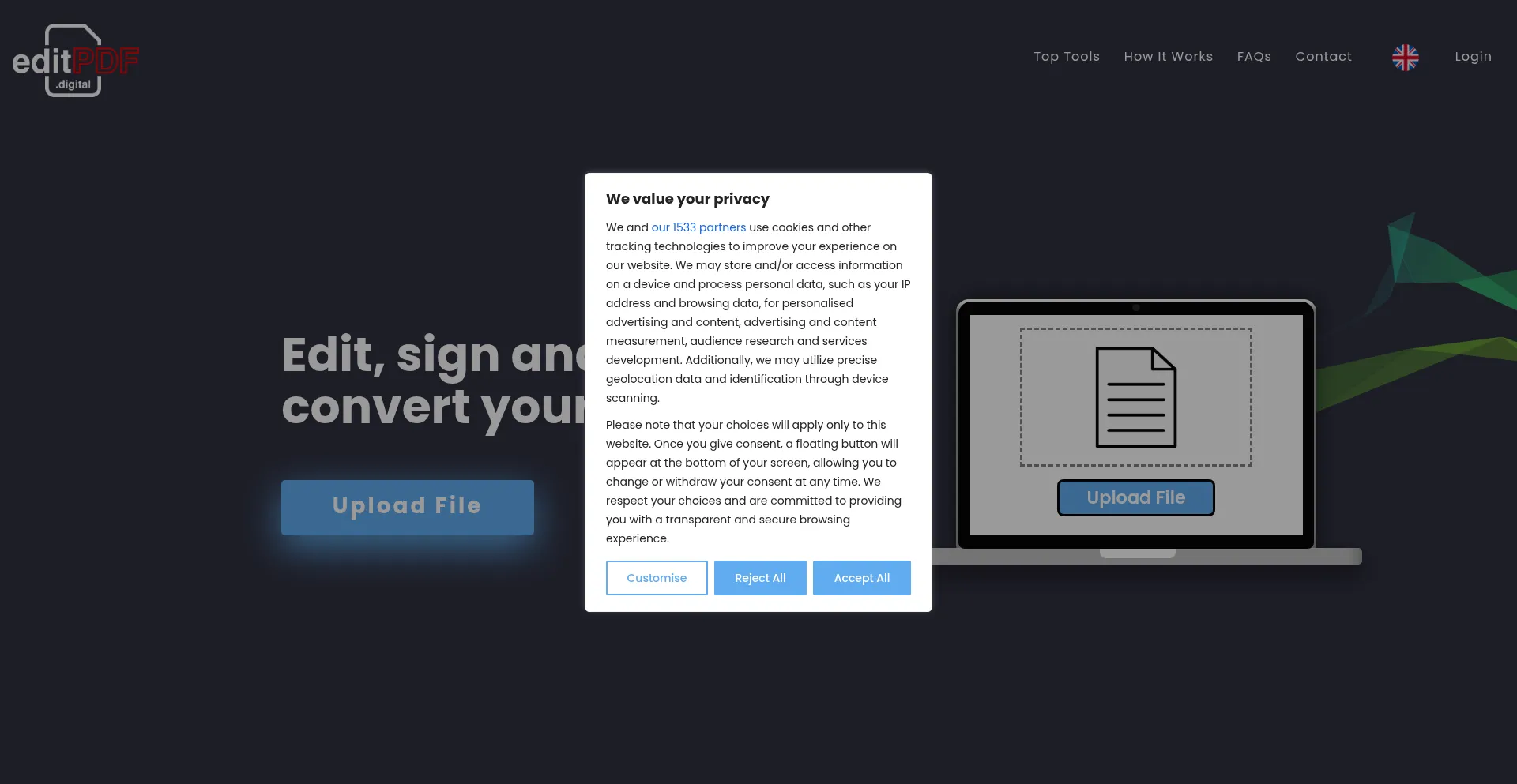 The website implements cookie consent mechanisms in compliance with privacy regulations such as GDPR or CCPA. This demonstrates that editpdfdigital.com adheres to data protection standards and provides users with control over personal data collection practices.