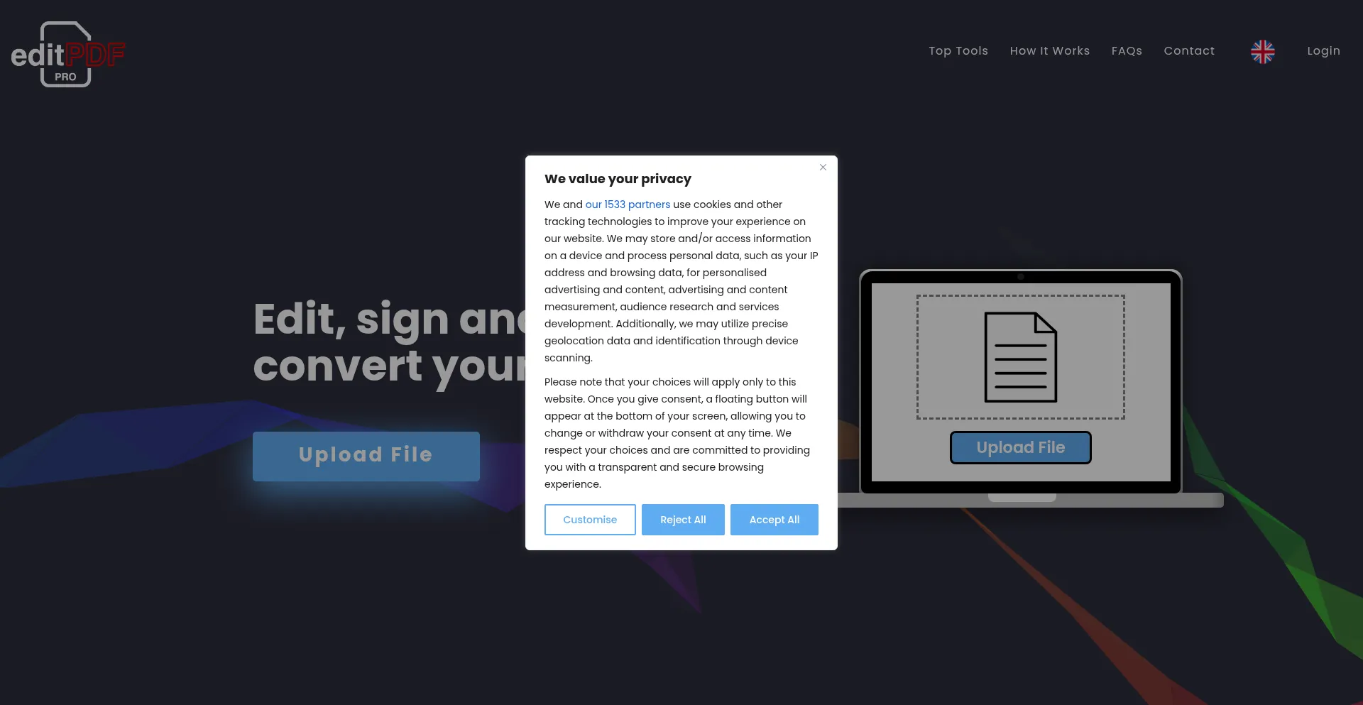The website implements cookie consent mechanisms in compliance with privacy regulations such as GDPR or CCPA. This demonstrates that editpropdf.com adheres to data protection standards and provides users with control over personal data collection practices.