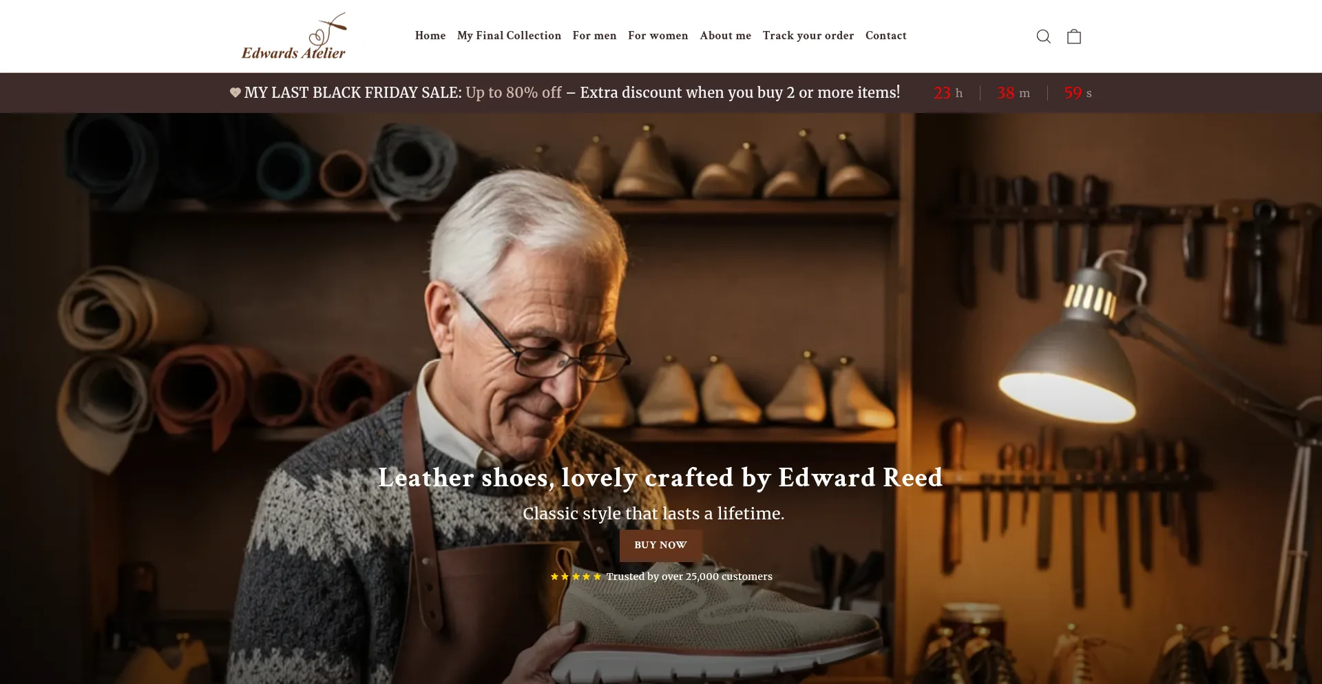 Our analyzer determines that website edwards-atelier.com is using Shopify CMS. Shopify is a popular e-commerce platform, powering around 4.4% of websites globally.