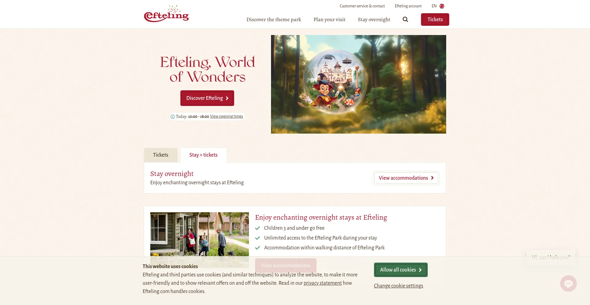 Efteling, World of Wonders. Theme Park with new exciting attractions and fairytales for a nice short break! View opening times and opening hours. Or book an overnight stay in on...