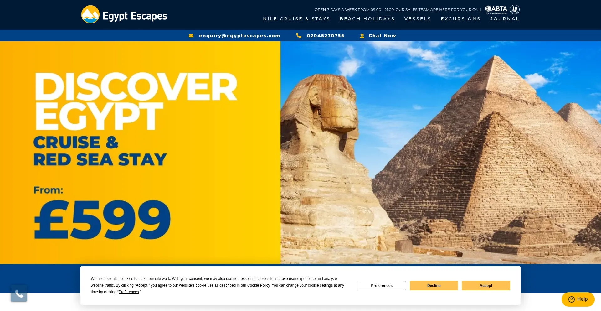Egypt Escapes are award-winning, ABTA & ATOL protected experts in providing holidays & tours to Egypt specialising in Nile Cruise & Stays.