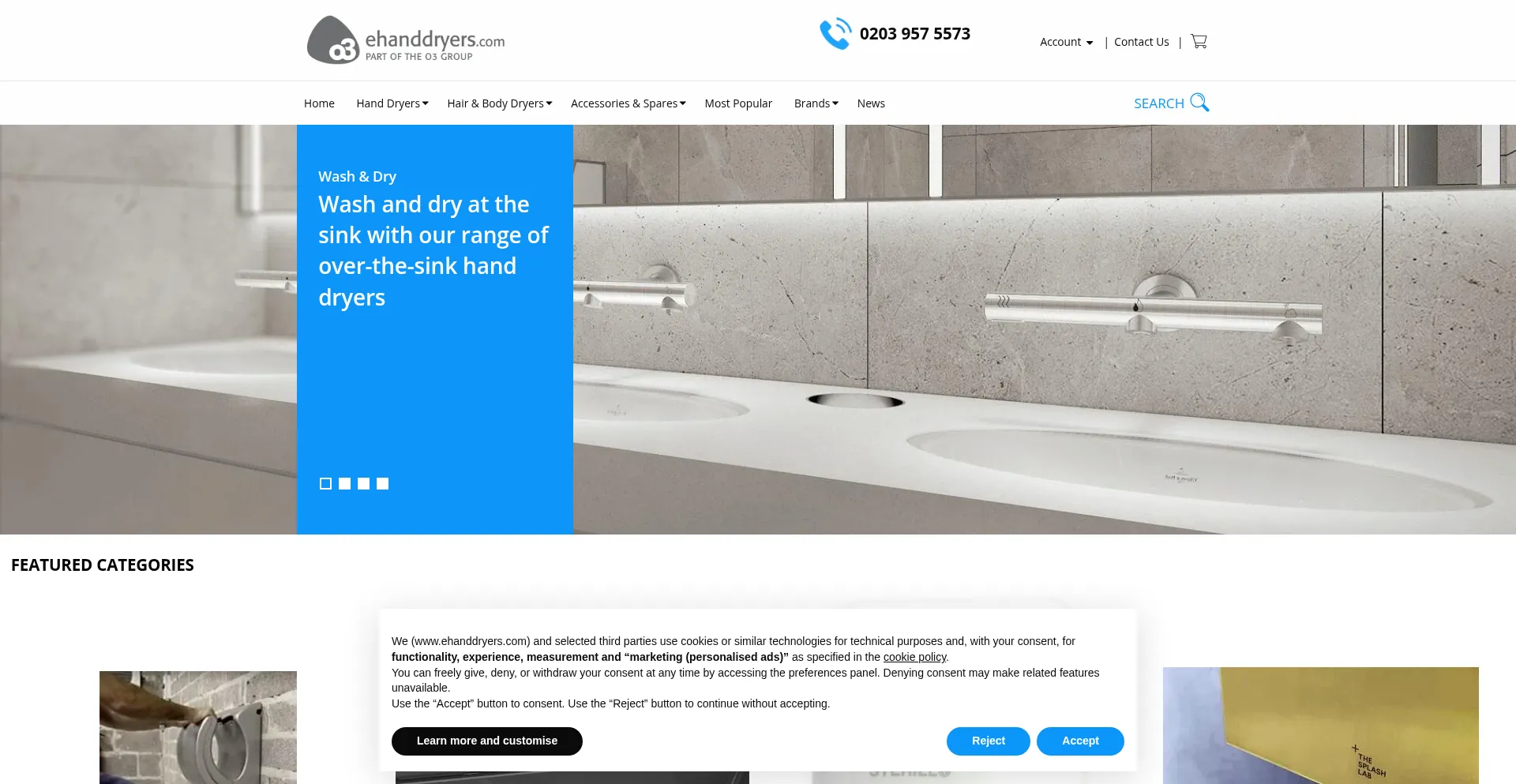 The website implements cookie consent mechanisms in compliance with privacy regulations such as GDPR or CCPA. This demonstrates that ehanddryers.com adheres to data protection standards and provides users with control over personal data collection practices.