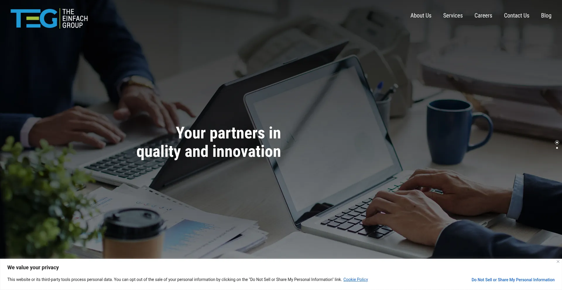 The website implements cookie consent mechanisms in compliance with privacy regulations such as GDPR or CCPA. This demonstrates that einfachgroup.com adheres to data protection standards and provides users with control over personal data collection practices.
