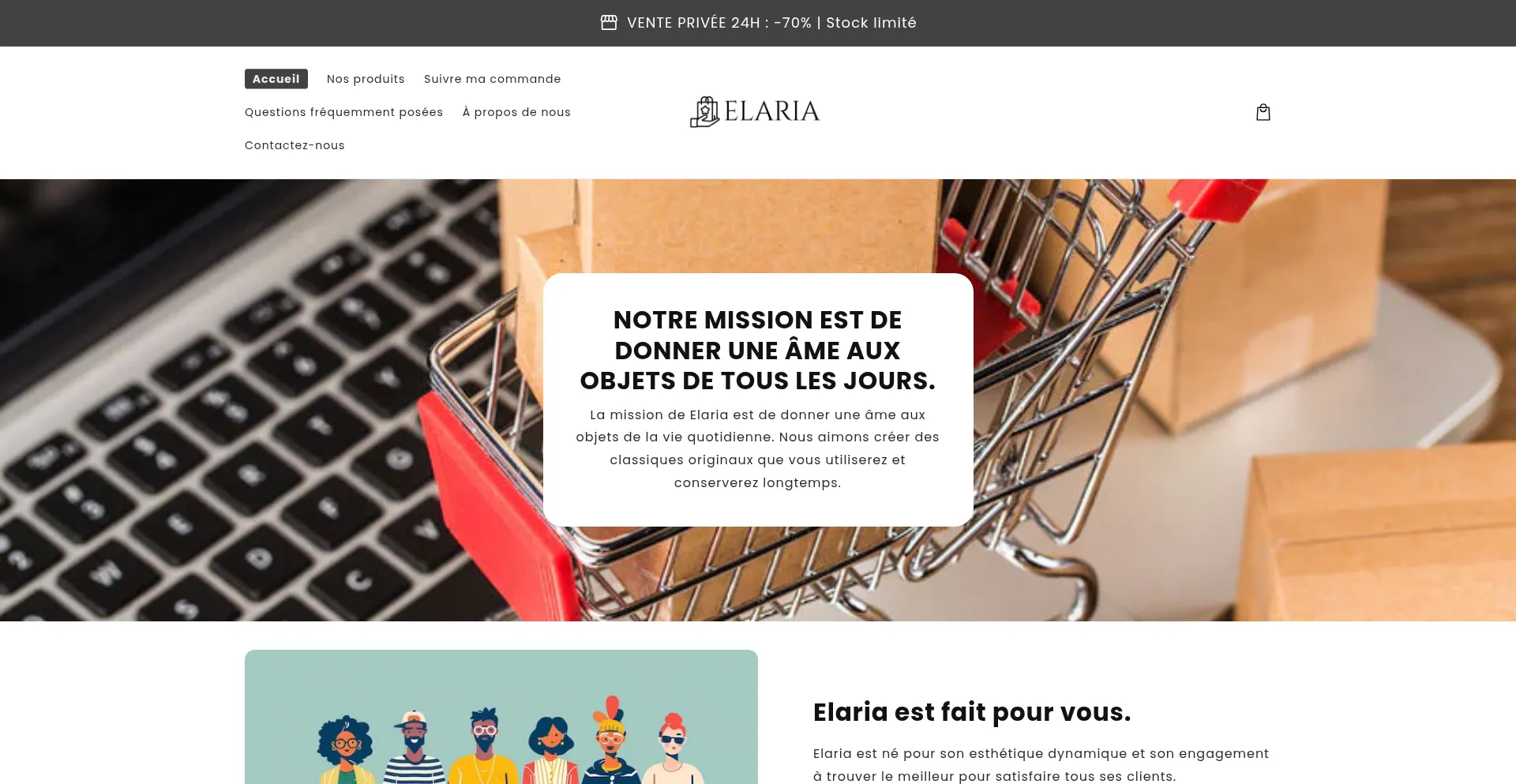 Analysis indicates that elaria-france.com operates as an e-commerce platform facilitating online transactions for goods or services. The website implements shopping cart functionality, payment processing systems, and product catalog features typical of commercial retail operations.