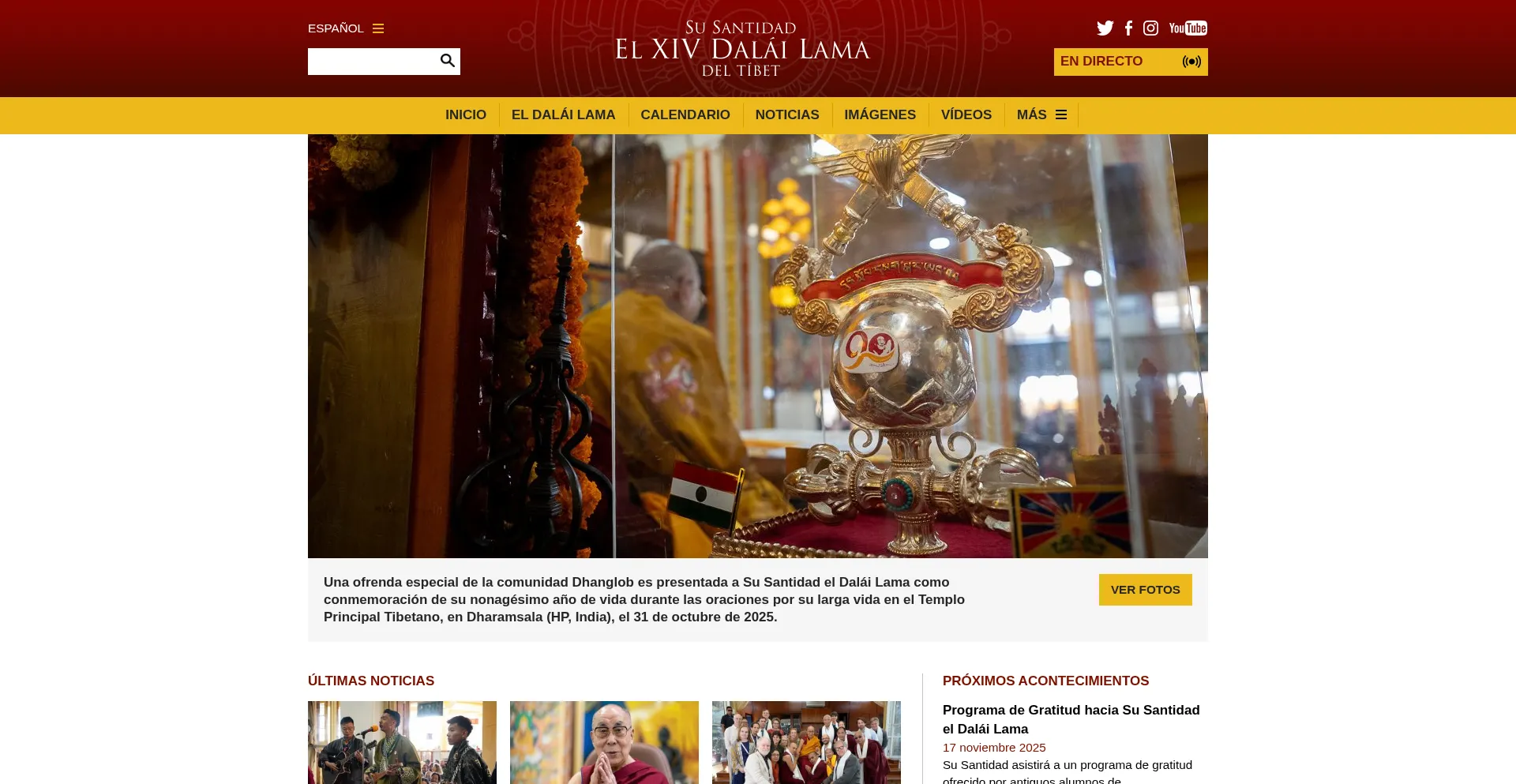 Bienvenidos a la página web oficial de la Oficina de Su Santidad el 14 Dalái Lama. Su Santidad es el líder espiritual del pueblo tibetano.