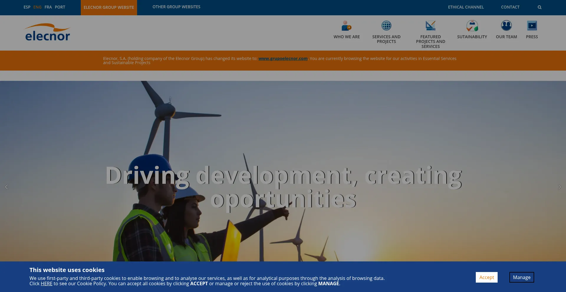 The elecnor.com website uses Google Tag Manager to add and update tracking tags on its website.
