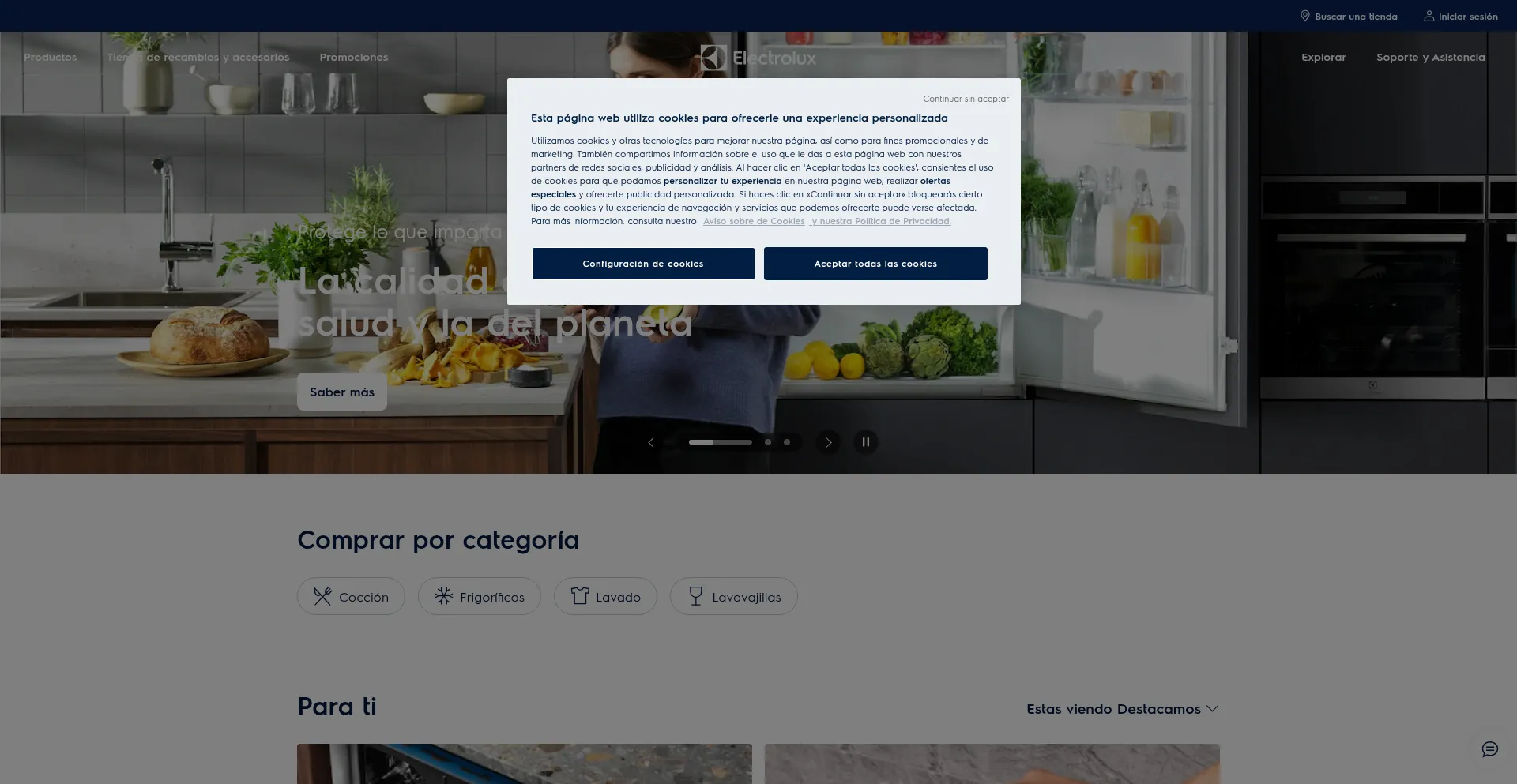 The website implements cookie consent mechanisms in compliance with privacy regulations such as GDPR or CCPA. This demonstrates that electrolux.es adheres to data protection standards and provides users with control over personal data collection practices.