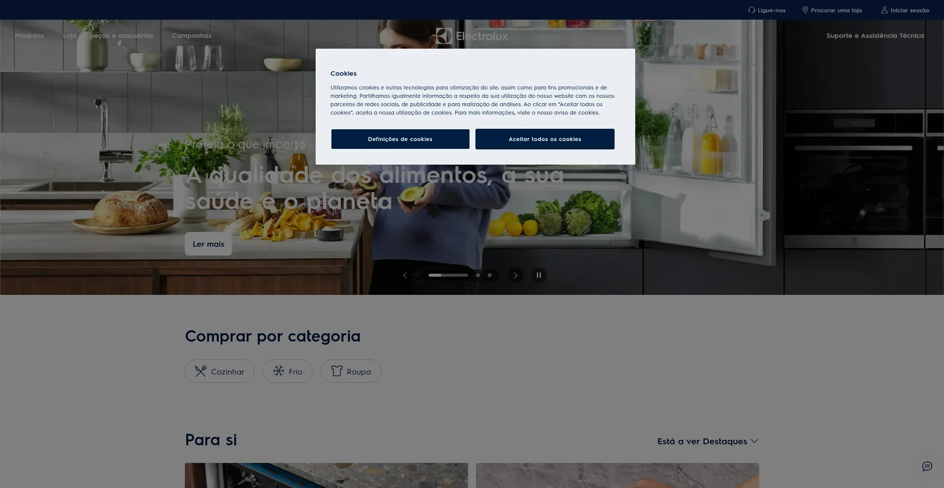 The website implements cookie consent mechanisms in compliance with privacy regulations such as GDPR or CCPA. This demonstrates that electrolux.pt adheres to data protection standards and provides users with control over personal data collection practices.