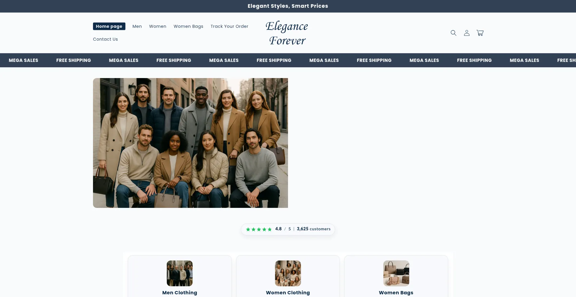 Analysis indicates that eleganceforeverstore.com operates as an e-commerce platform facilitating online transactions for goods or services. The website implements shopping cart functionality, payment processing systems, and product catalog features typical of commercial retail operations.