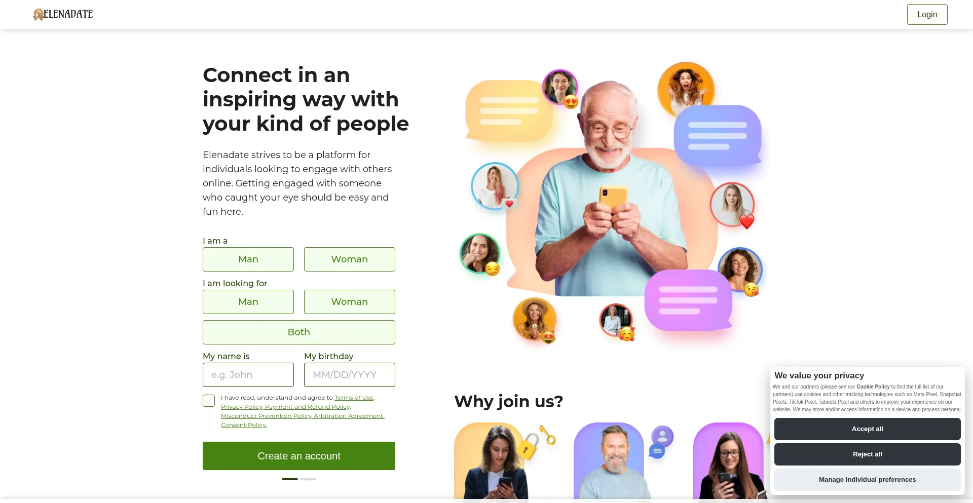 The elenadate.com website implements data collection forms requesting personal information including names, email addresses, phone numbers, or other sensitive details. Users should verify the legitimacy of it and review privacy policies before submitting personal data.