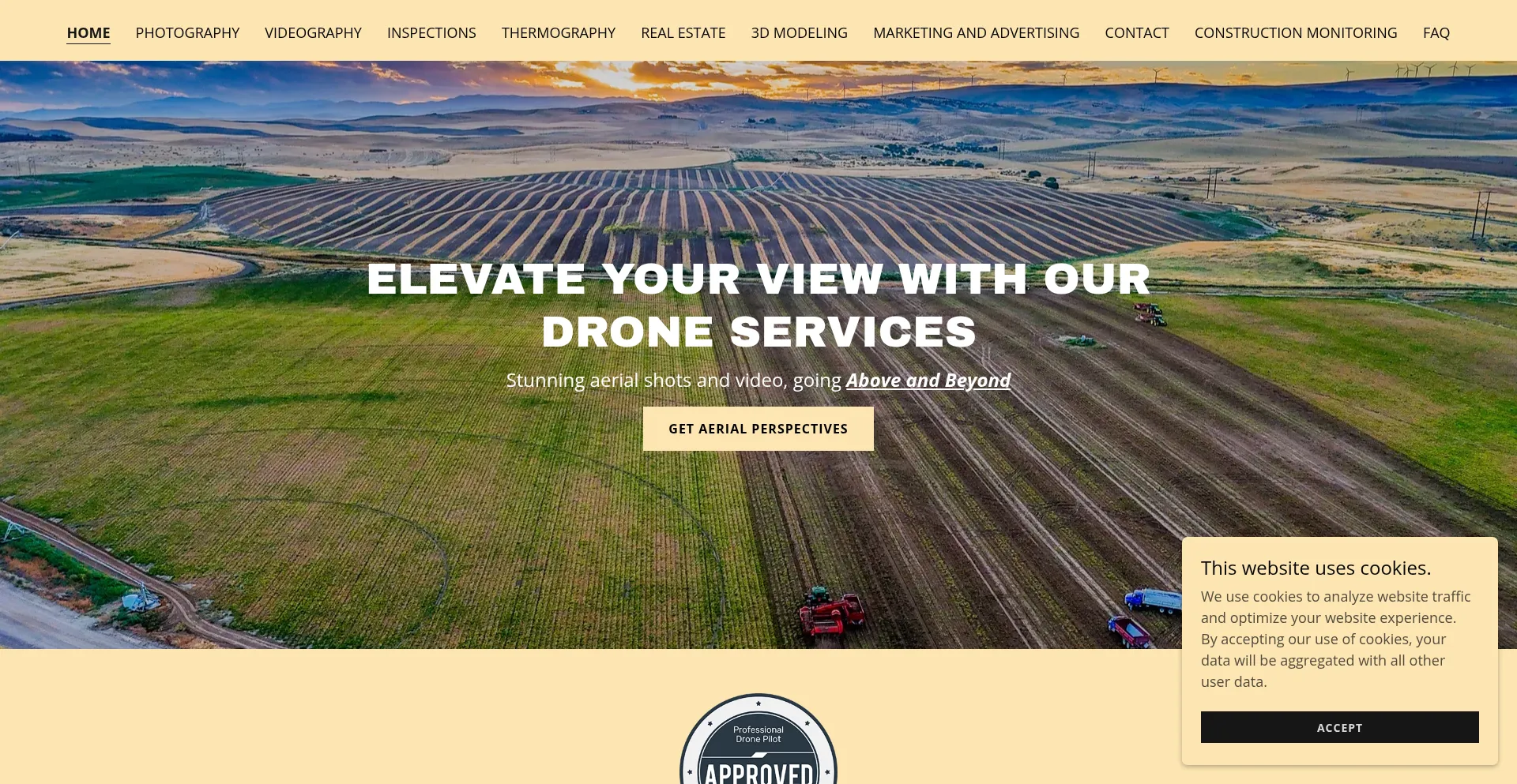 The website implements cookie consent mechanisms in compliance with privacy regulations such as GDPR or CCPA. This demonstrates that elevatedhorizondrones.com adheres to data protection standards and provides users with control over personal data collection practices.