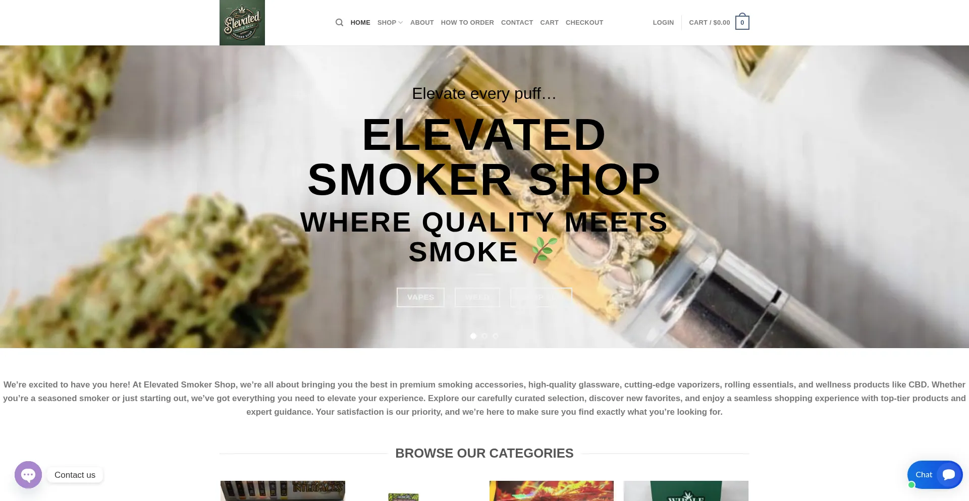 Analysis indicates that elevatedsmoker.com operates as an e-commerce platform facilitating online transactions for goods or services. The website implements shopping cart functionality, payment processing systems, and product catalog features typical of commercial retail operations.