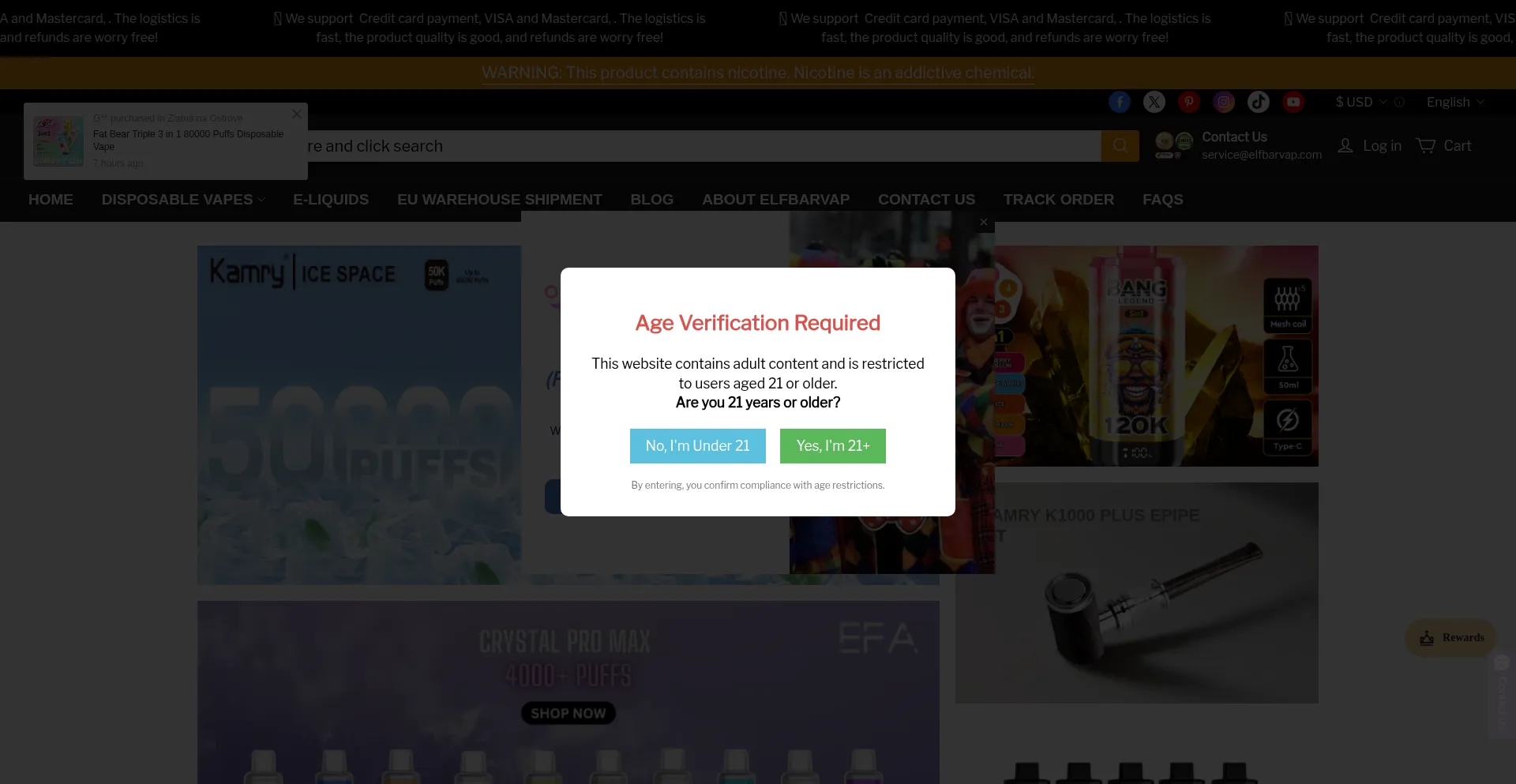 Elfbarvap.com exhibits characteristics consistent with scam-like e-commerce operations. The site appears to accept payments while customer reports suggest data collection issues.