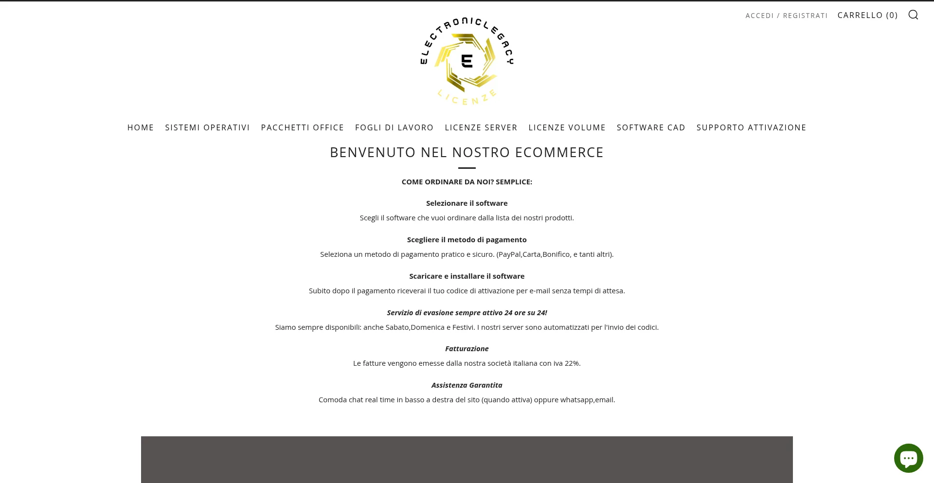 The elicenze.com website utilizes free e-commerce platform solutions, which may indicate cost-conscious operations but could also suggest limitations in security features, customer support, or advanced functionality compared to enterprise-grade solutions.